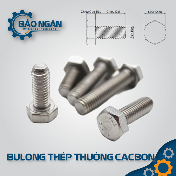 Bulong thép thường cacbon tại Thiết bị Bảo Ngân được khách hàng ưa chuộng nhờ chi phí đầu tư thấp, khả năng gia công dẻo dai và tính ứng dụng cực kỳ linh hoạt. Sản phẩm dễ dàng tìm kiếm phụ kiện đi kèm như tán (đai ốc) và long đền đồng bộ, giúp việc bảo trì và thay thế trở nên đơn giản hơn bao giờ hết.